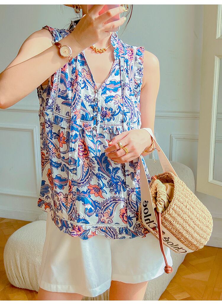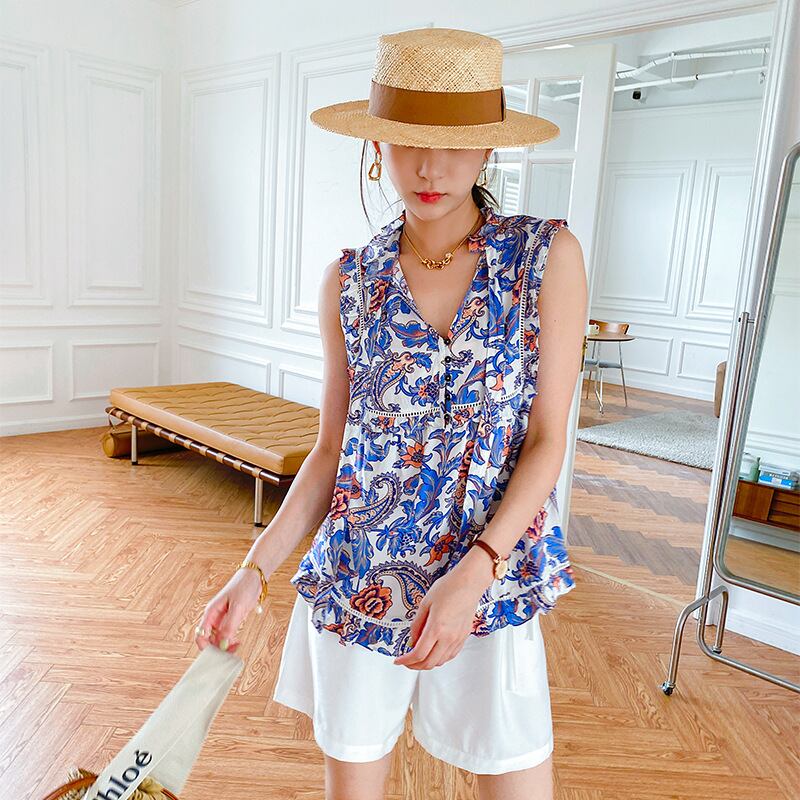 u19600トップス レディース 短袖シャツ 上着 夏新作 通勤 花柄 ノースリーブ