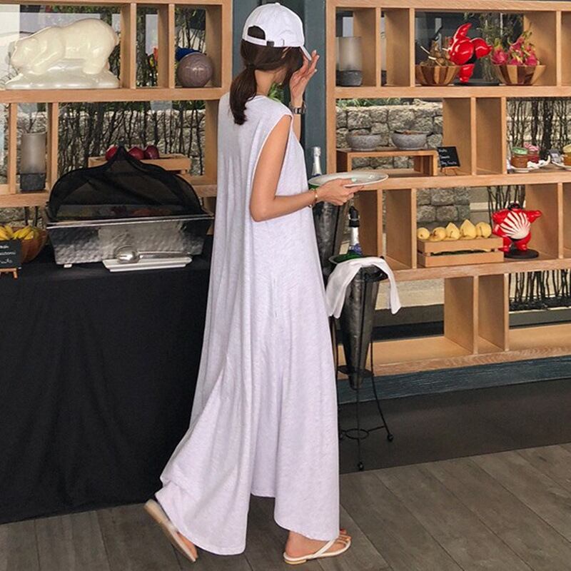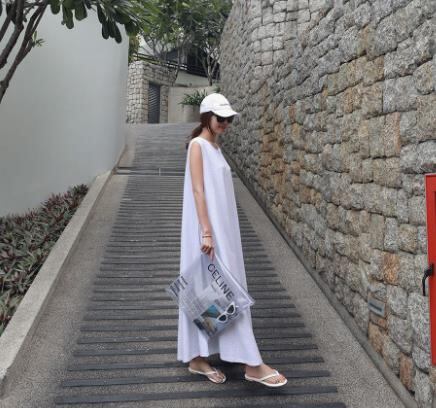 u19581 2色ワンピース 夏新作   着痩せ ノースリーブ 無地 レディース  ストリート