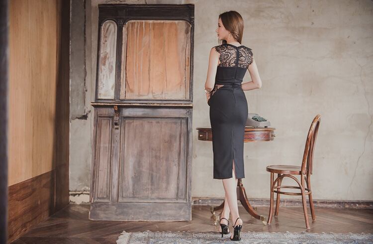 u19577 ワンピース レース ノースリーブ レディース 夏新作 着痩せ エレガンス ラウンドネック セクシー