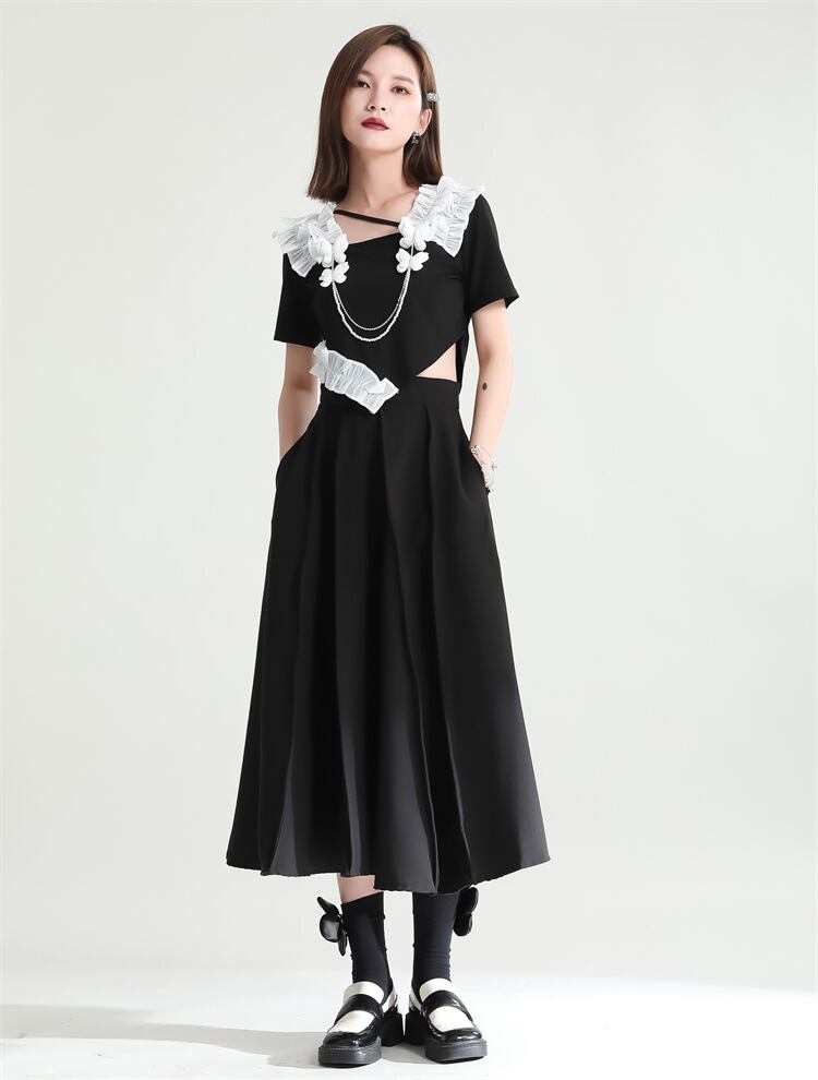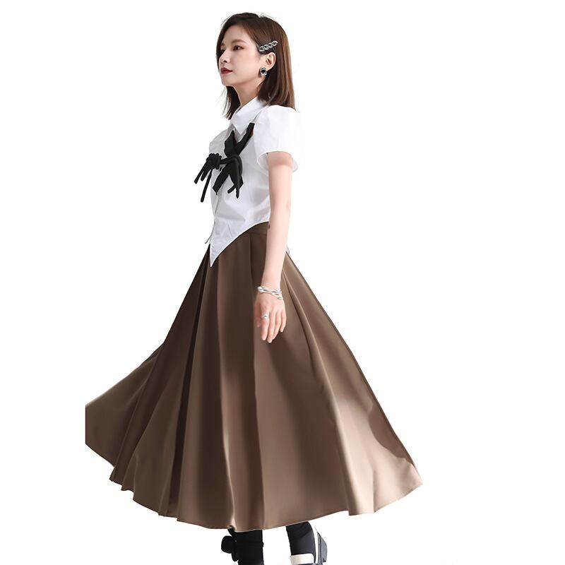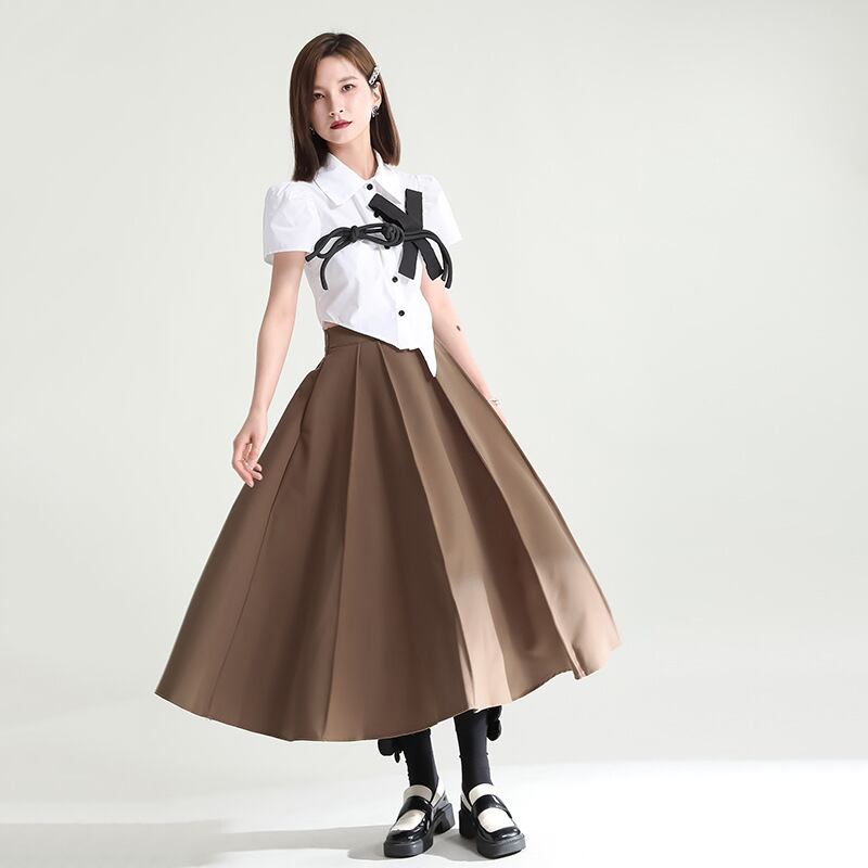 u19447 2色 レディース スカート 無地 ロングスカート プリーツスカート エレガンス