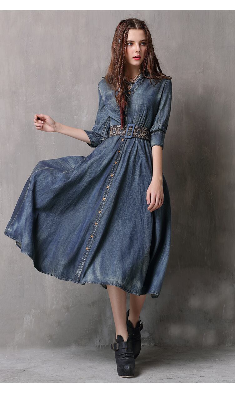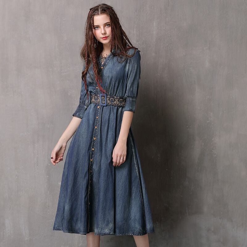 u19569 ワンピース デニム レディース 夏新作 エレガンス 刺繍 レトロ 着痩せ エスニック