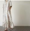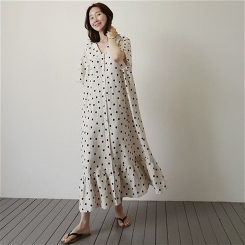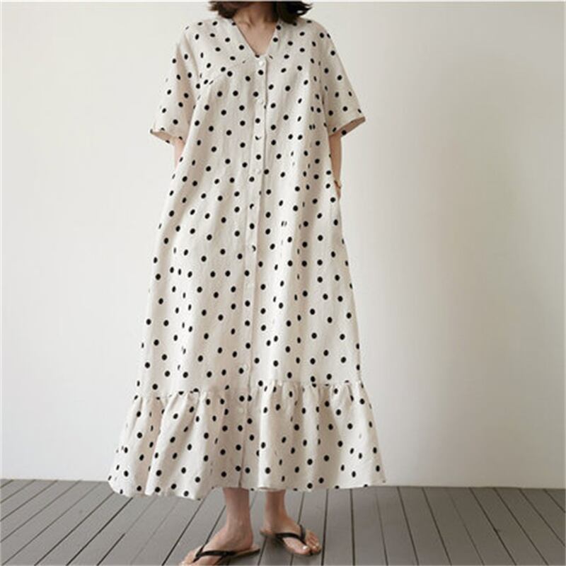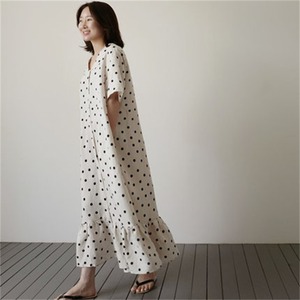 u19491 ワンピース 夏新作 レディース マキシ 大きいサイズ ドット Vネック フリル 通勤