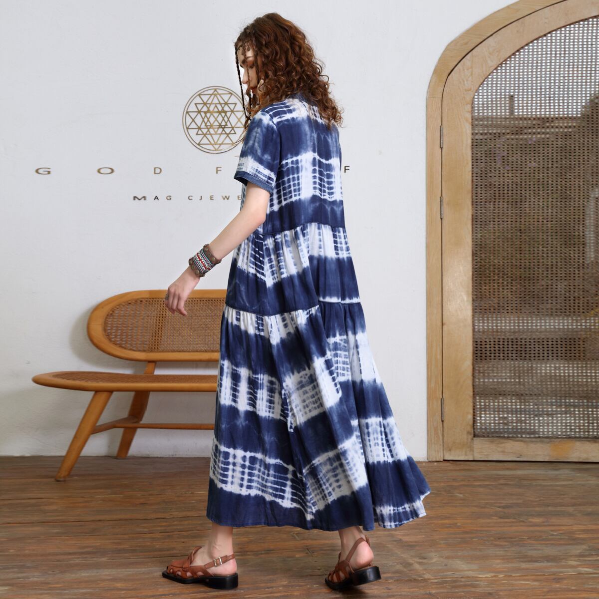 u19566 ワンピース レディース  夏新作 ファッション プリント エレガンス マキシ 捺染