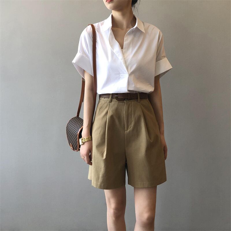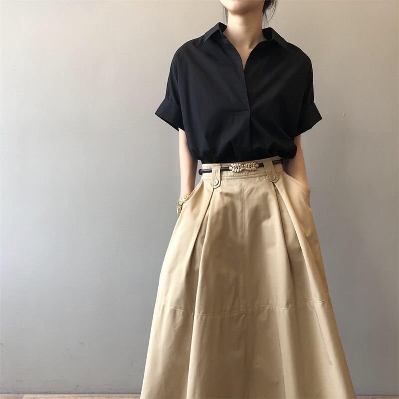 u19563 3色 トップス レディース  上着 夏新作 スタンドカラー 日系スタイル 半袖 無地