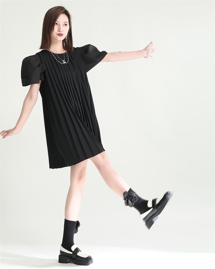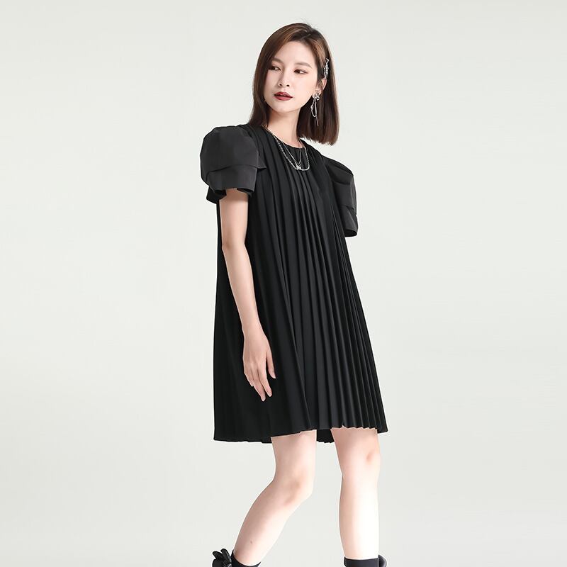 u19483 ワンピース レディース パフスリーブ 夏新作 プリーツスカート カジュアル フリーサイズ