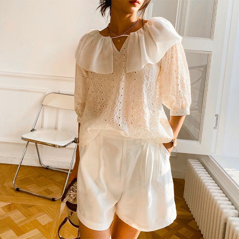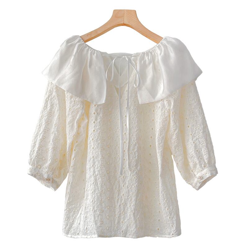 u19426 レースシャツ トップス 上着 夏新作 レディース ファッション ラウンドネック OL 通勤 エレガンス