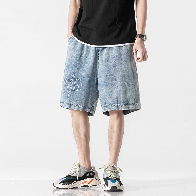 P12238 ショートパンツ 英字柄 ポケット付き メンズ ジンズ おしゃれ カジュアル