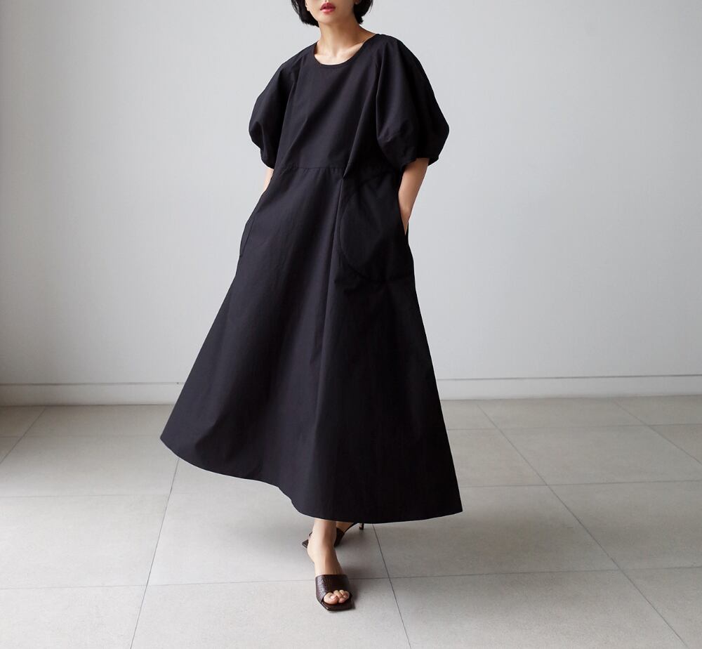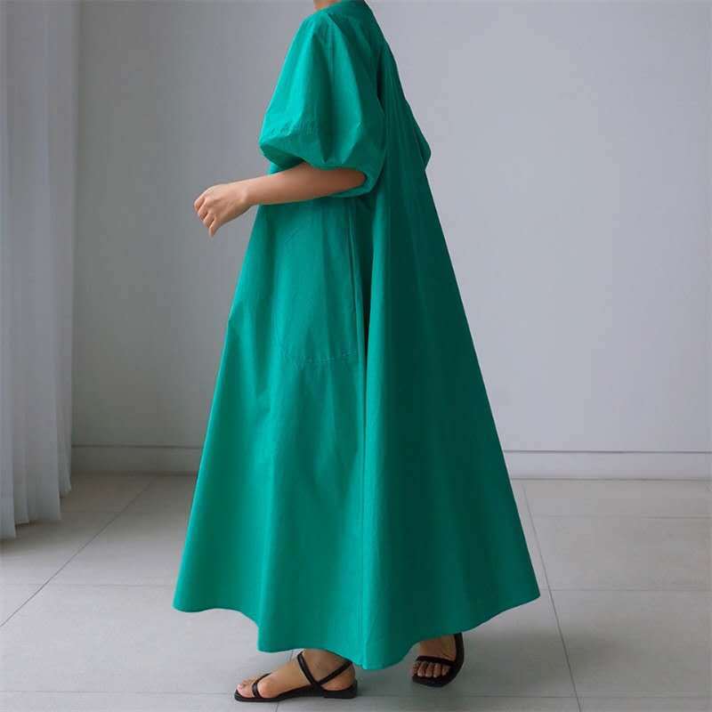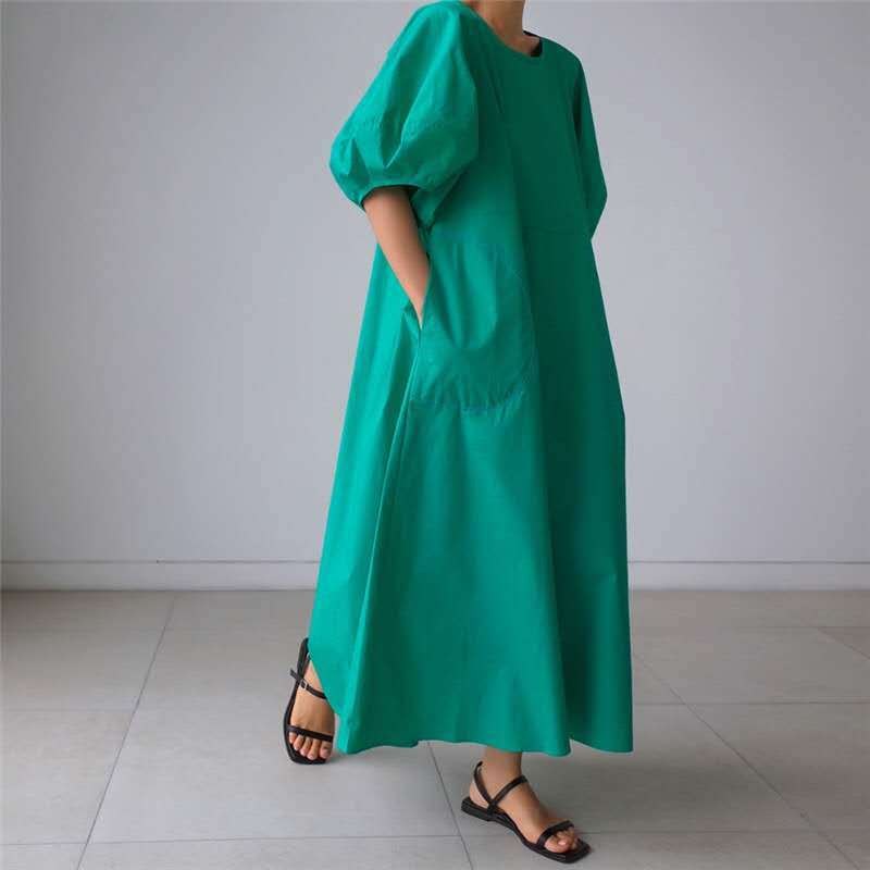 u19413 ワンピース 夏新作 レディース  バルーンスリーブ カジュアル 通勤 マキシ 森ガール
