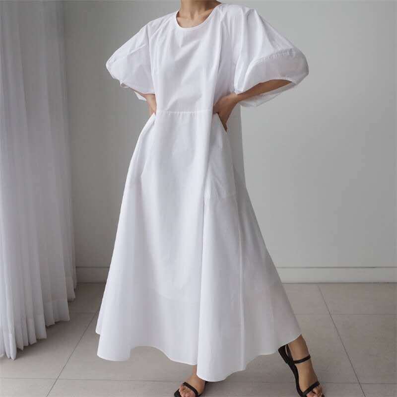 u19413 ワンピース 夏新作 レディース バルーンスリーブ カジュアル 通勤 マキシ 森ガール