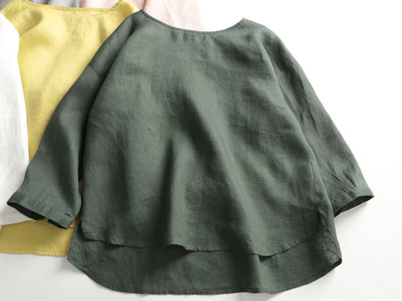 u19376 4色 トップス レディース シャツ 上着 夏新作 ラウンドネック 日系スタイル 無地 エレンガンス