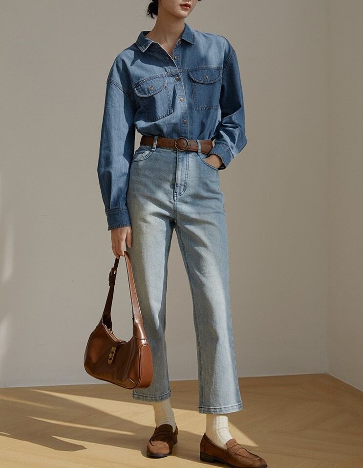 u19083 シャツ カジュアル デニムコート 「2022新作」 レディース 長袖 パーカー トップス 無地 上着