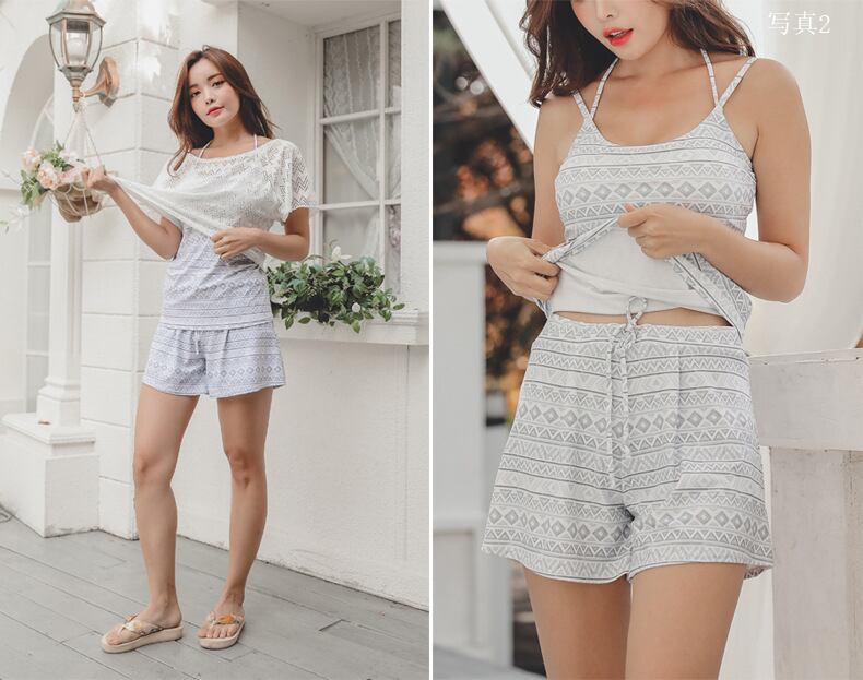 u19192 日焼け防止 ショートパンツ シャツ レディース 上下3点 三点セット スポーツ 水着
