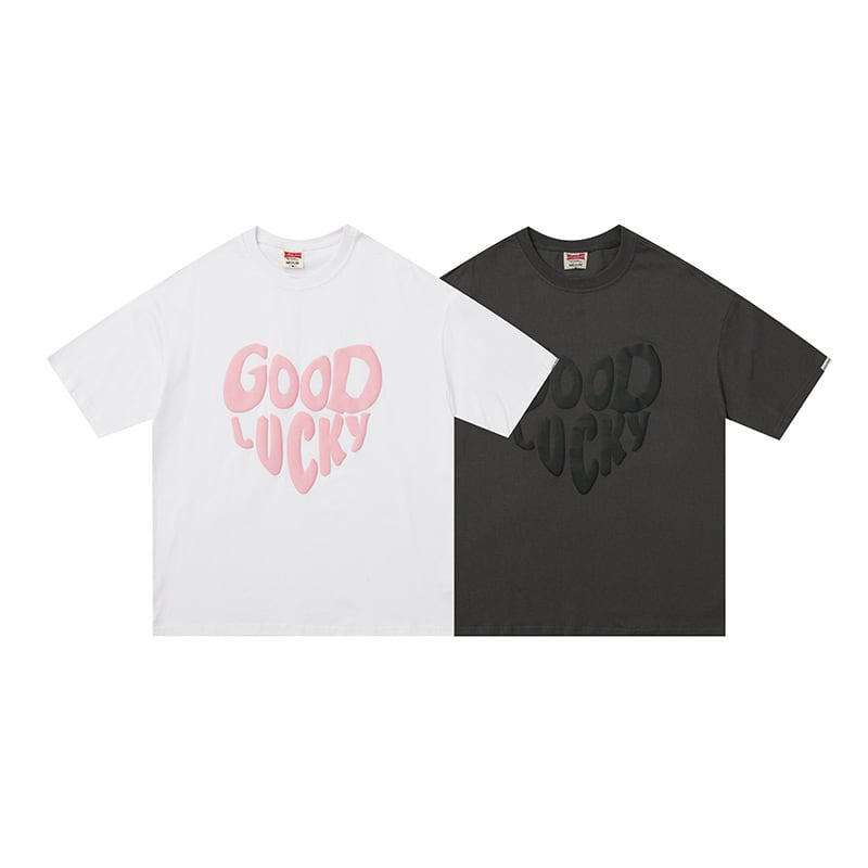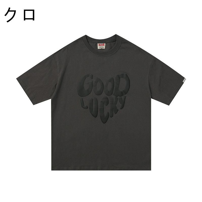 P12088 Tシャツ 春夏 おしゃれ 2色  丸首 トップス ハート 英字柄