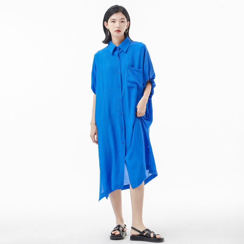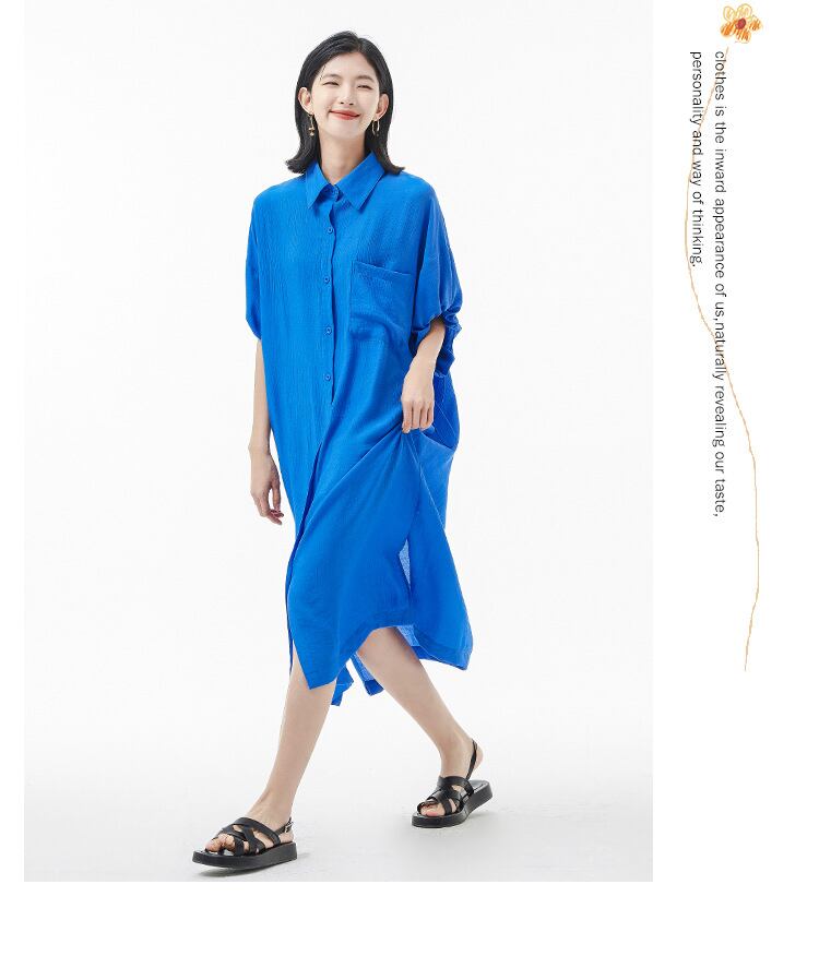 u19244 シャツワンピース レディース  ロング丈 新作 ルーズ ポロ カジュアル フリーサイズ