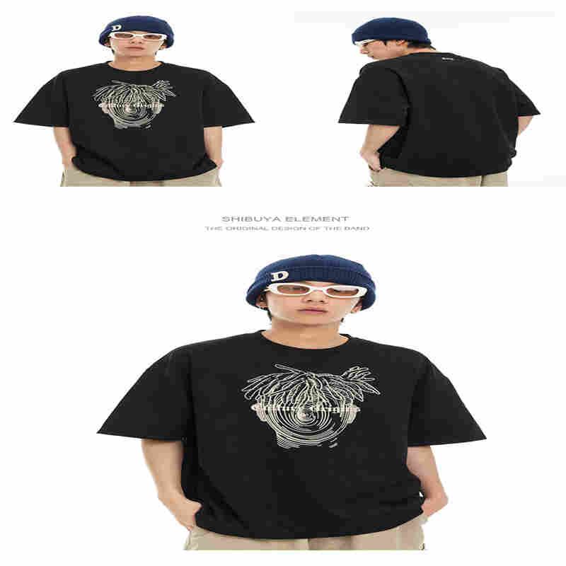 P12010 トップス ルーズ シャツ 上着 プリント 新作 Tシャツ 五分丈 メンズ ラウンドネック