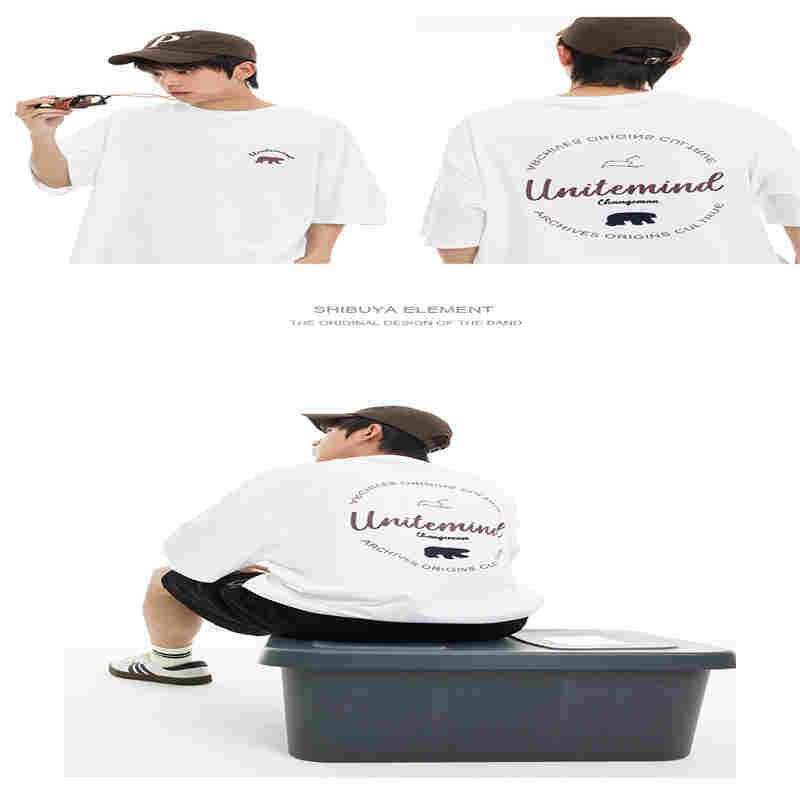 P12008 トップス ルーズ シャツ 熊柄 上着 プリント 新作 Tシャツ 五分丈
