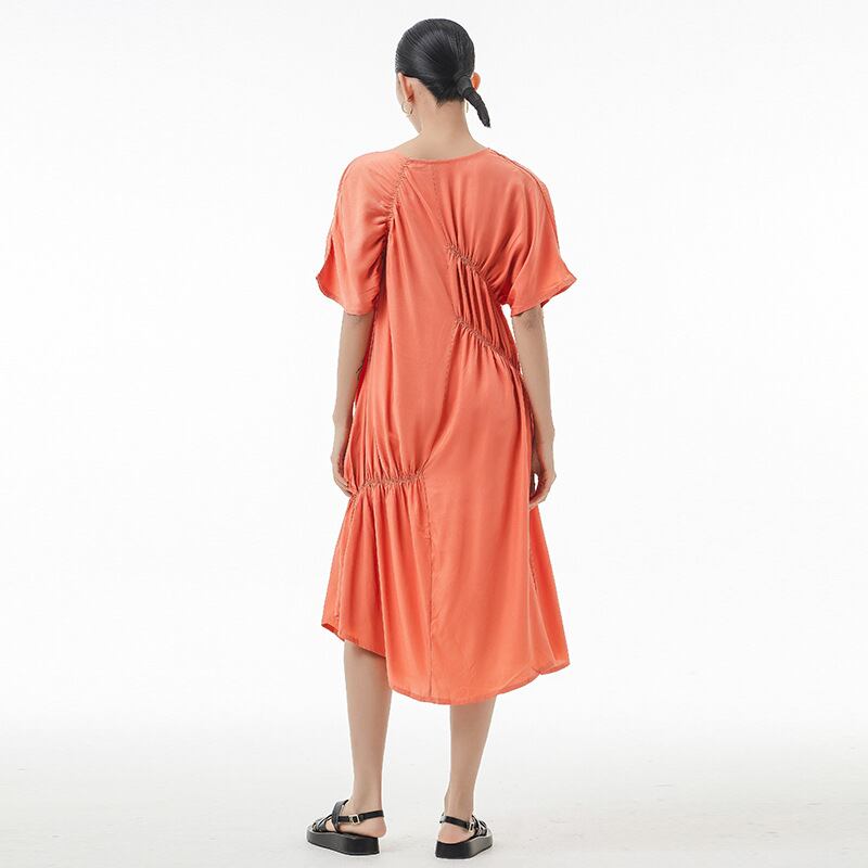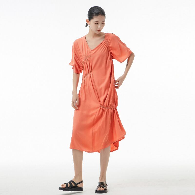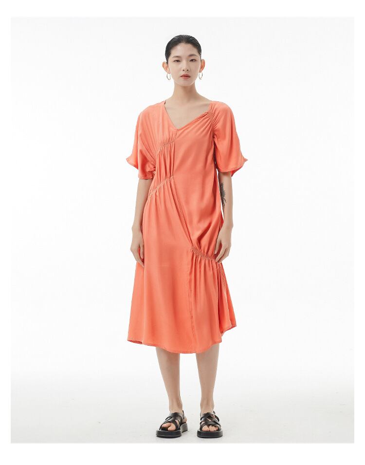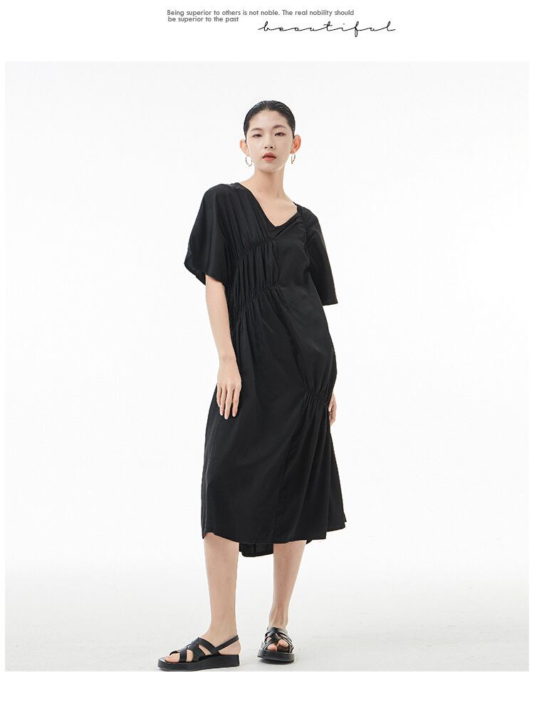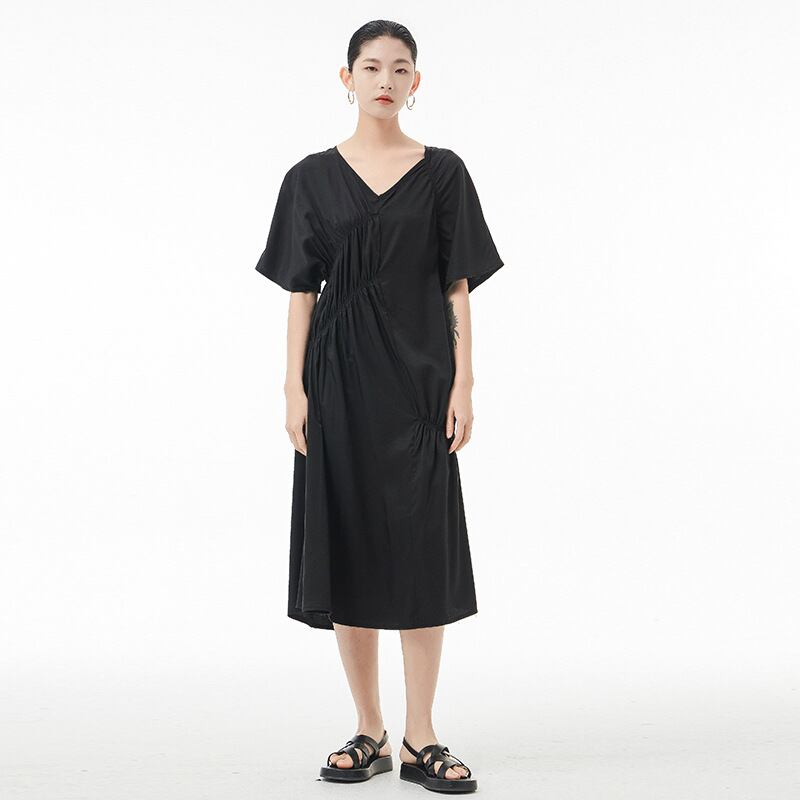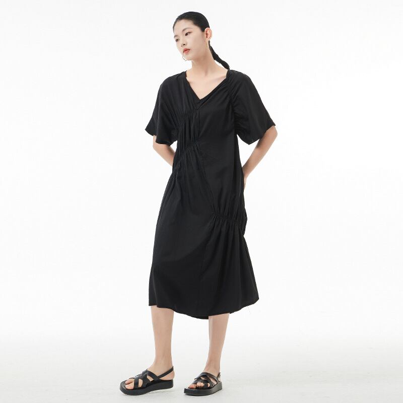 u19303 ワンピース レディース プリーツ ロング丈 夏新作 カジュアル フリーサイズ ヤング Vネック