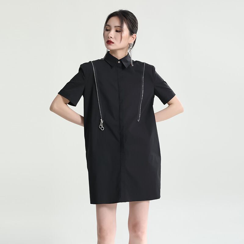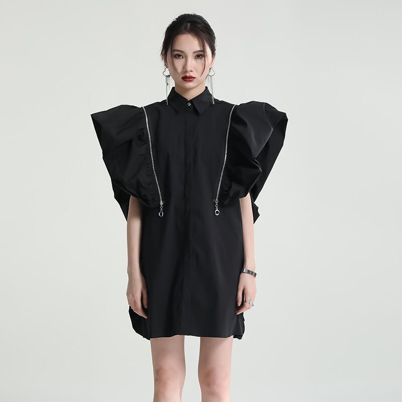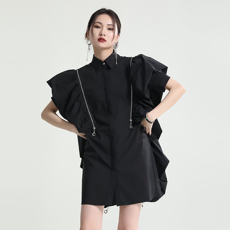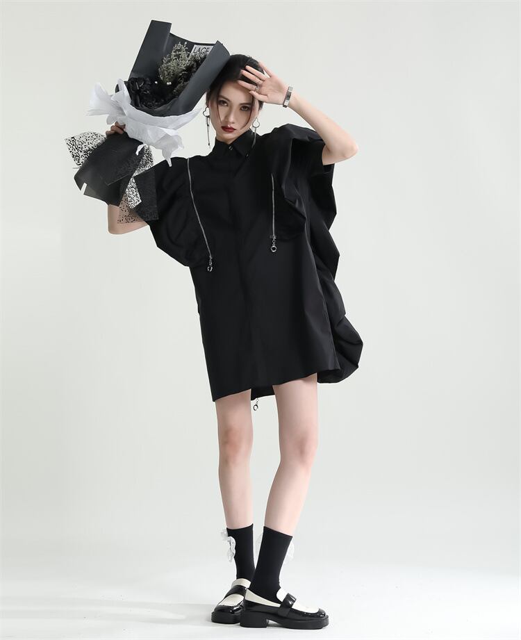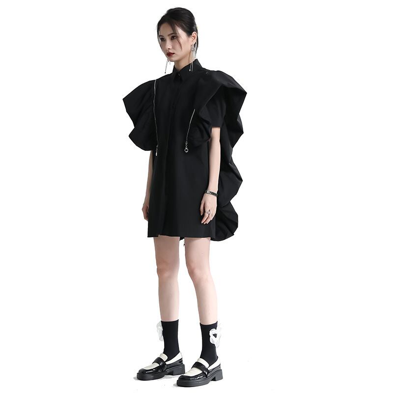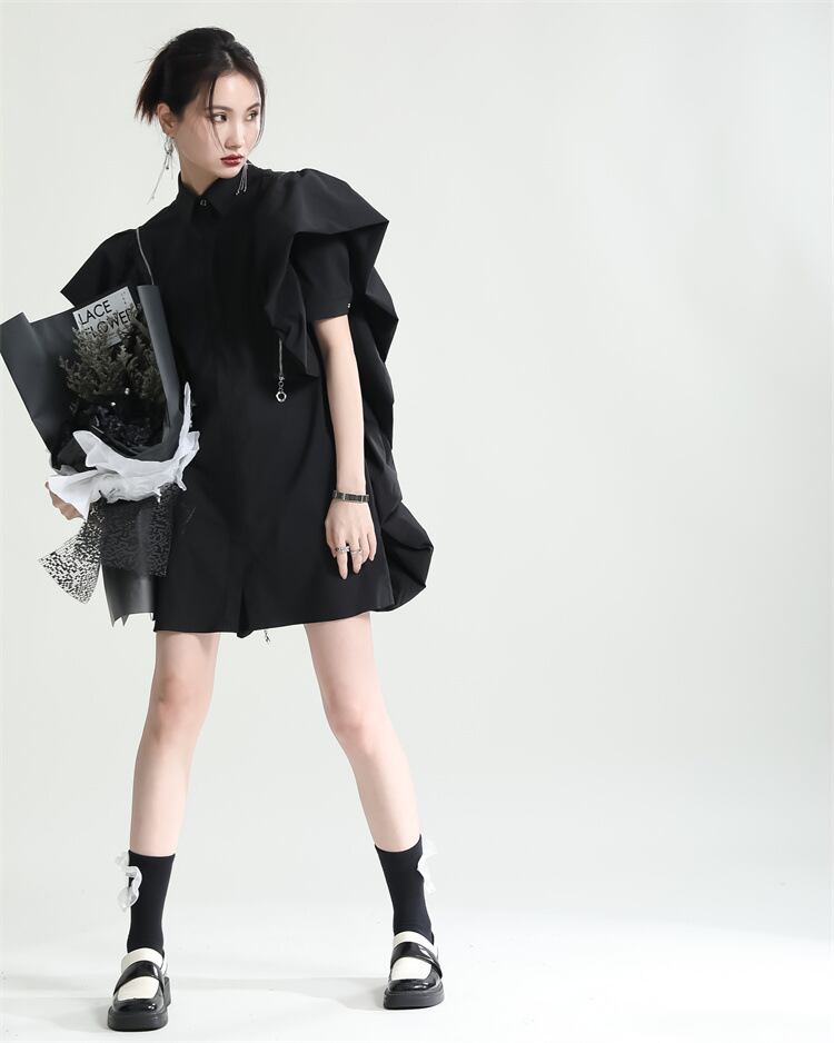 u19290 ショートワンピース レディース 夏新作 フリル 着痩せ ショールカラー 上品