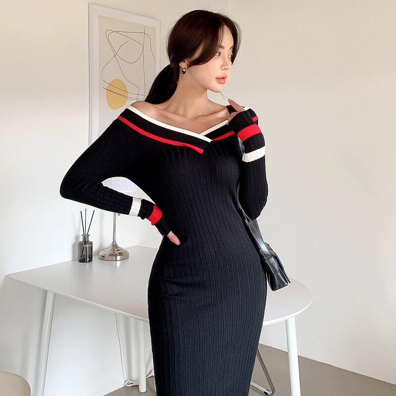 u18763 ワンピース  ミドル   ニットレス レディース 長袖   大きいサイズ 無地  オーエル