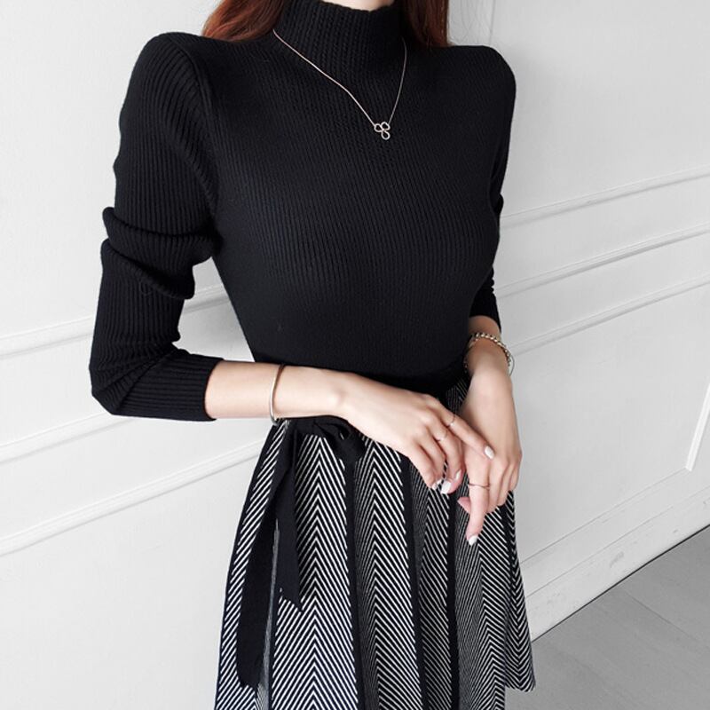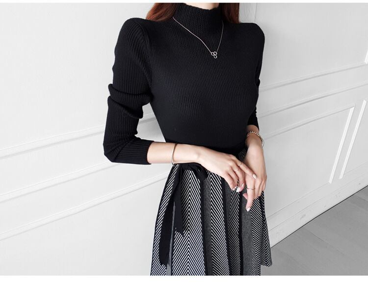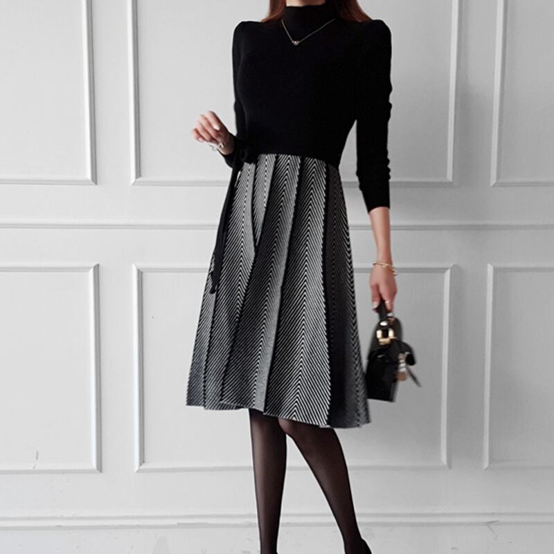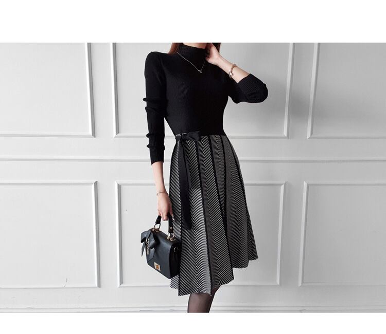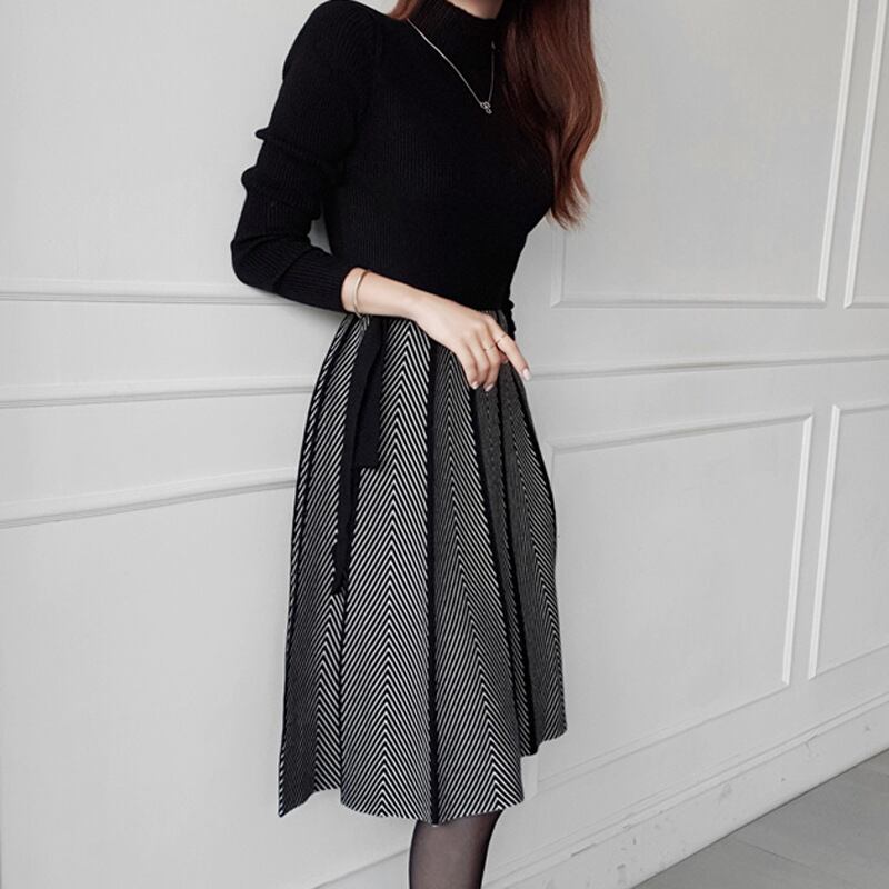 u18739 仮二件 ワンピース ドレス ニット 防風 レディース ミドル 秋冬 無地 防寒 オーエル 個性