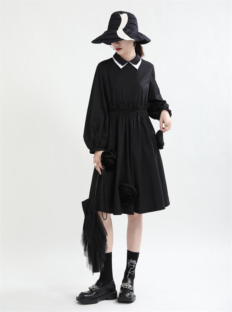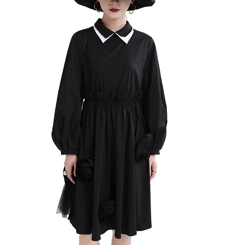 u18717 ワンピース シャツドレス レディース 長袖 膝丈 無地 大きいサイズ チュニック