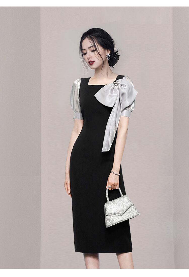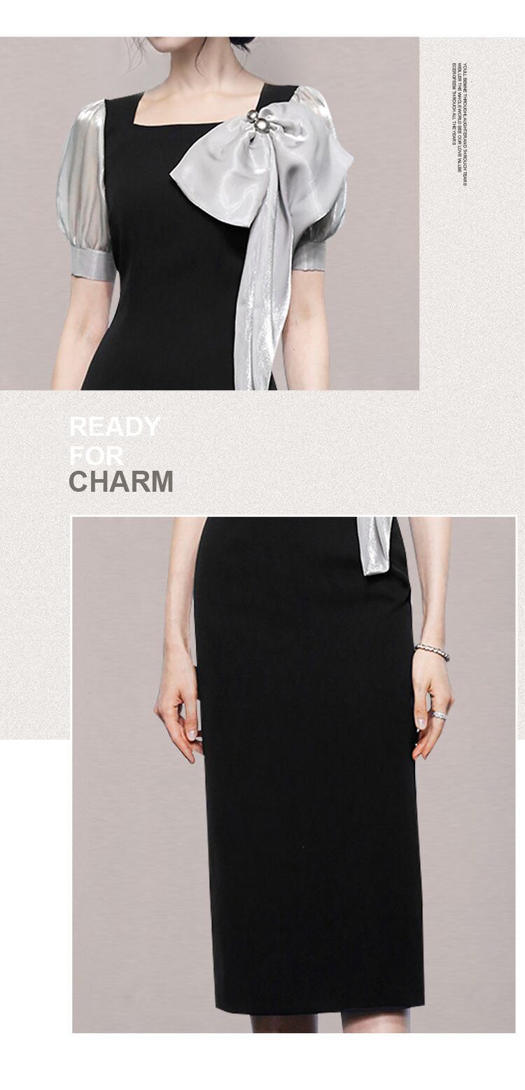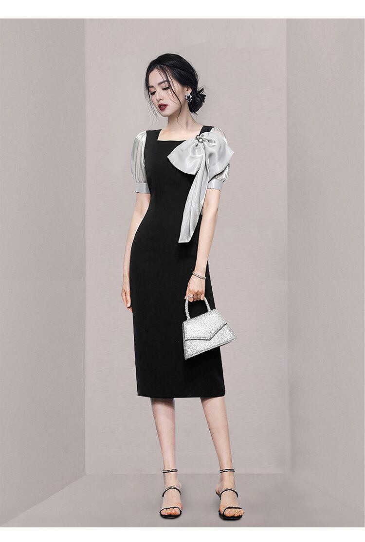 u18247 上品 ミドル丈 ワンピース デート 新作 リボン レディース ドレス  Aライン