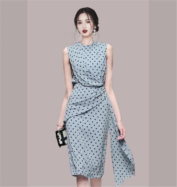 u18246ミドル丈 ワンピース デート 新作 ドット 丸点 レディース ドレス  Aライン