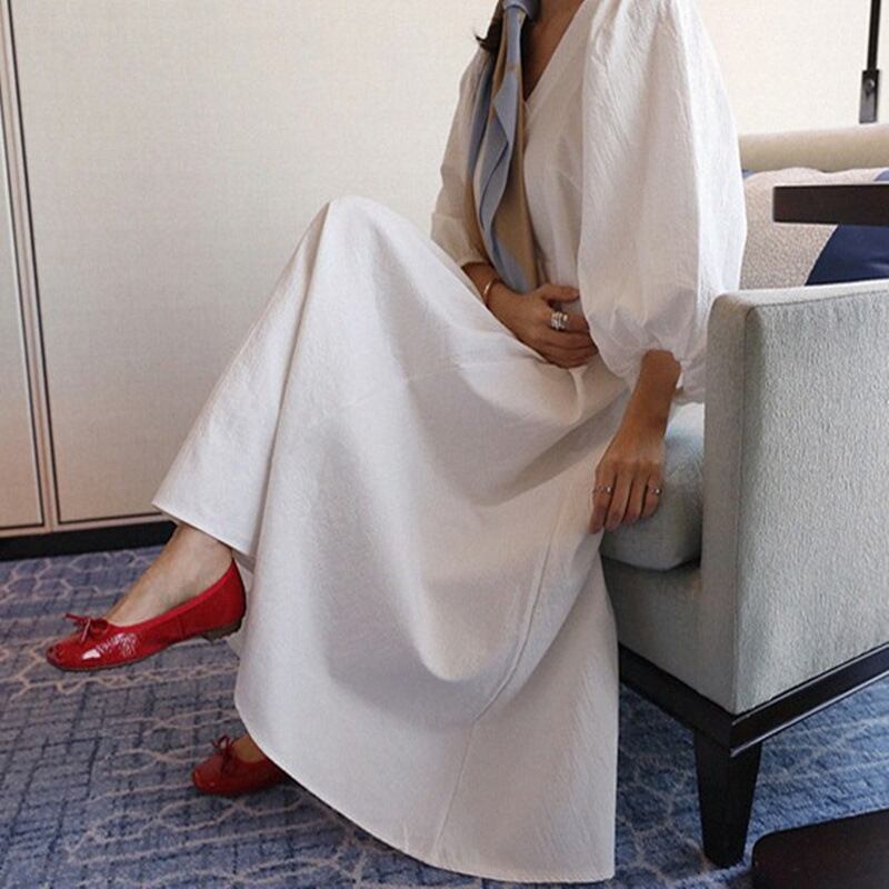 u18532 無地 大きいサイズ ゆったり ワンピース Vネック 2022新作 レディース ドレス