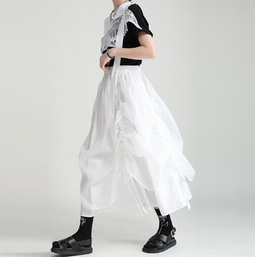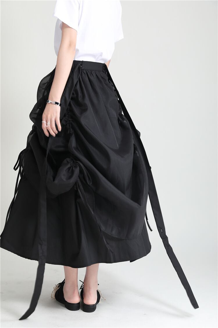 u18136 新作 スタイリッシュ レディース 切り替え Aライン スカート ミドル丈 体型カバー