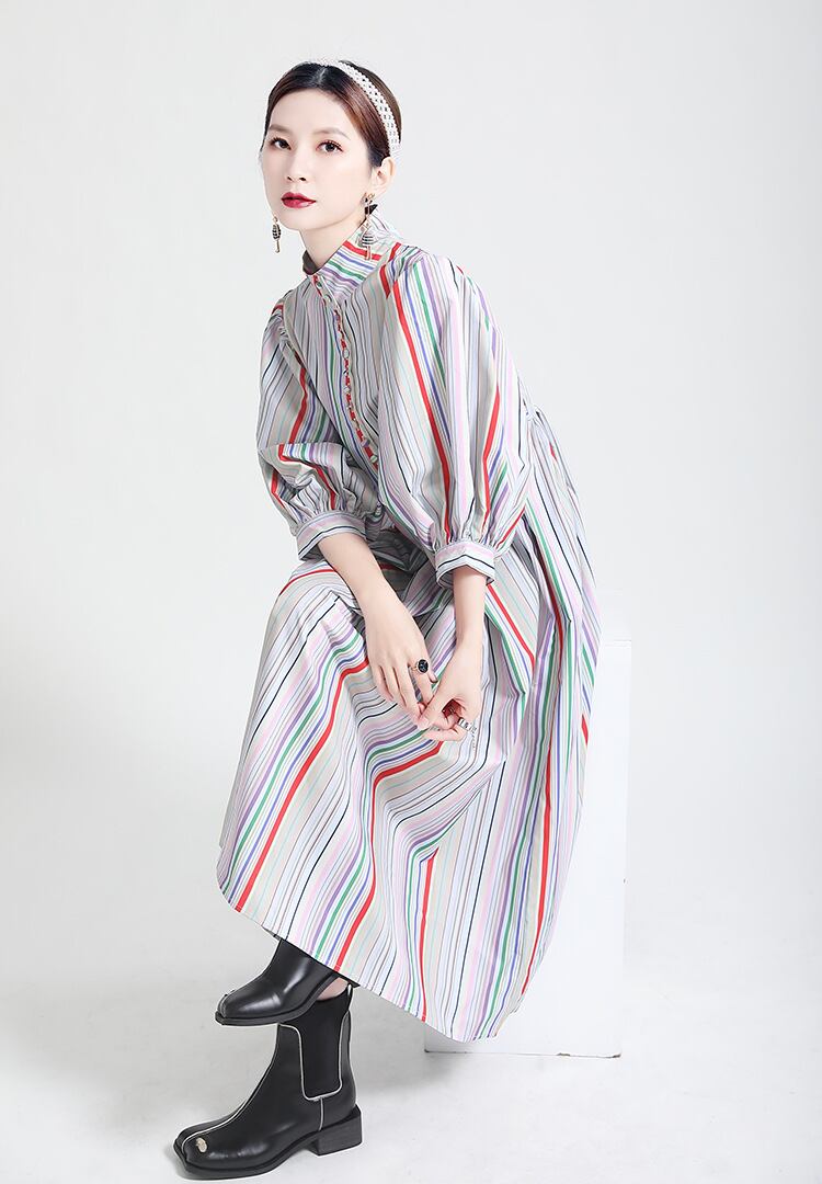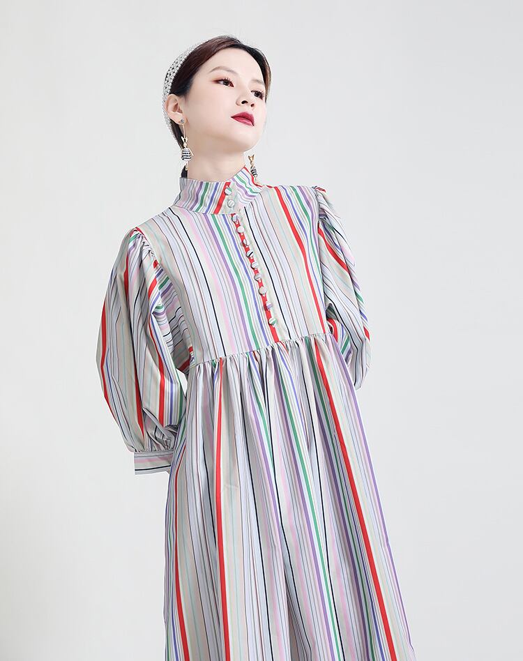 u17928 ストライプ ドレス SALE 女性らしい 2022新作  紫外線対策 日焼け止め ワンピース