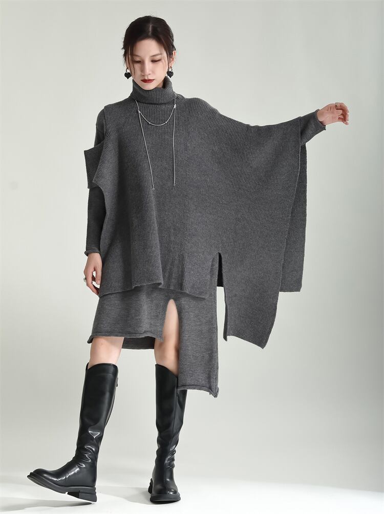 u20339 ワンピース 二点セット 着痩せ カットソー 秋冬新作 レディース OL ケープ