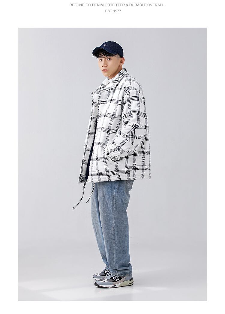P13053 カジュアル メンズ チェック コート 厚手 ジャケット 防寒アウター  保温 中綿 上着