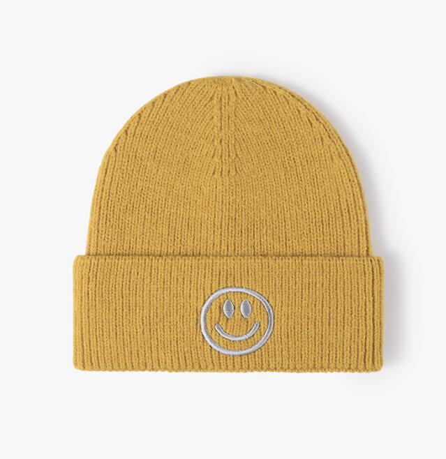 P13092 新作 秋 冬 帽子 ニットワッチ スマイル刺繍 保温