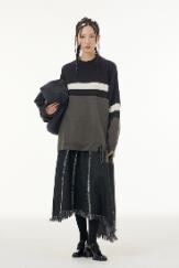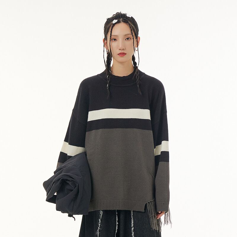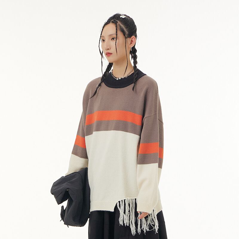 u20447 トップス レディース 上着 保温 冬新作 ニット セーター ボーダー カジュアル フリンジ