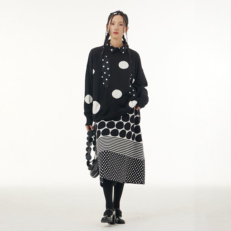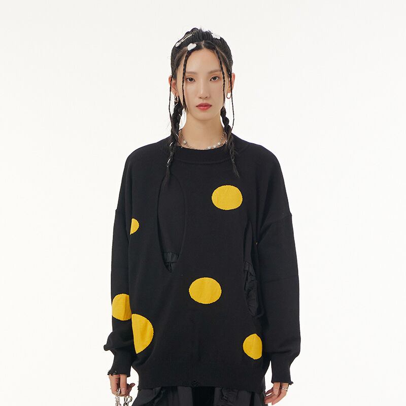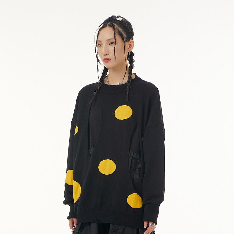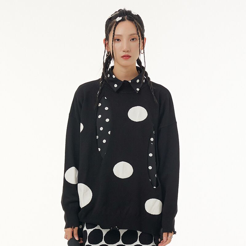 u20439 トップス レディース 上着 保温 冬新作 ニット セーター ヤング ラウンドネック ドット 2色