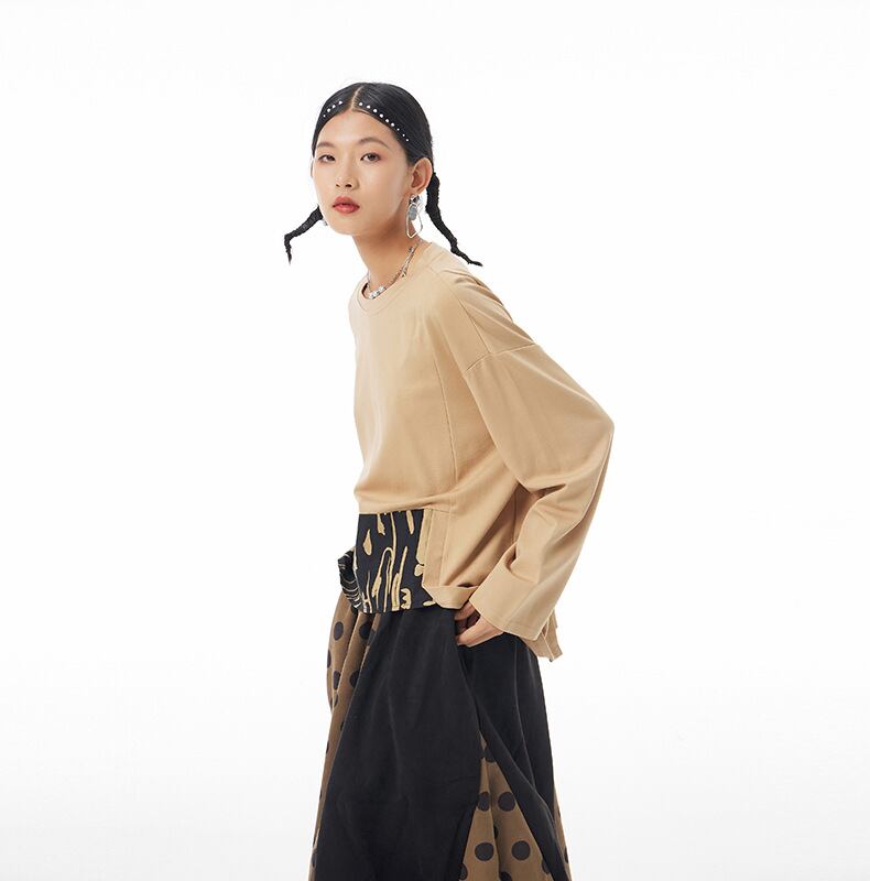 u20488 レディース トップス 上着 カジュアル ラウンドネック ロング丈 上品 卒業 長袖