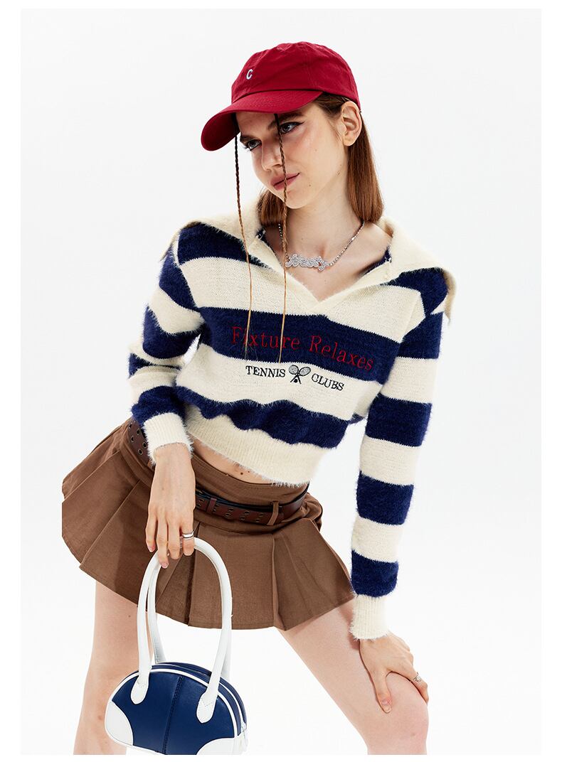 u20501 ショートニット セーター トップス レディース コーデ 上着 秋冬新作 カットソー ボーダー 保温