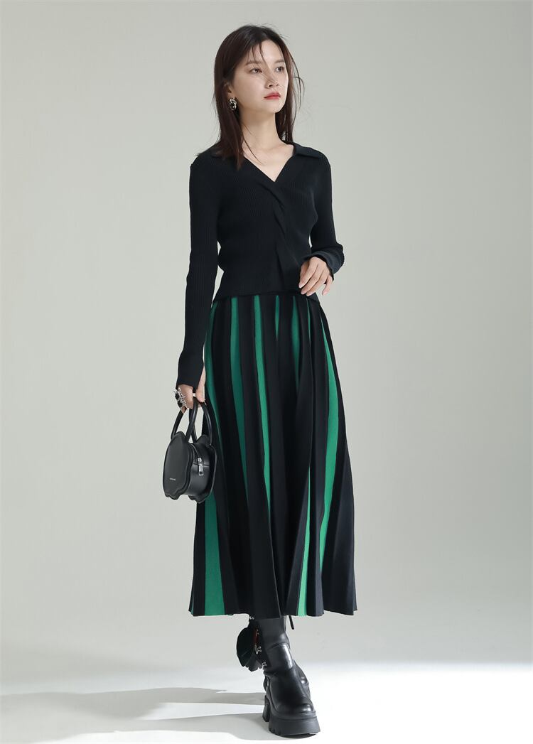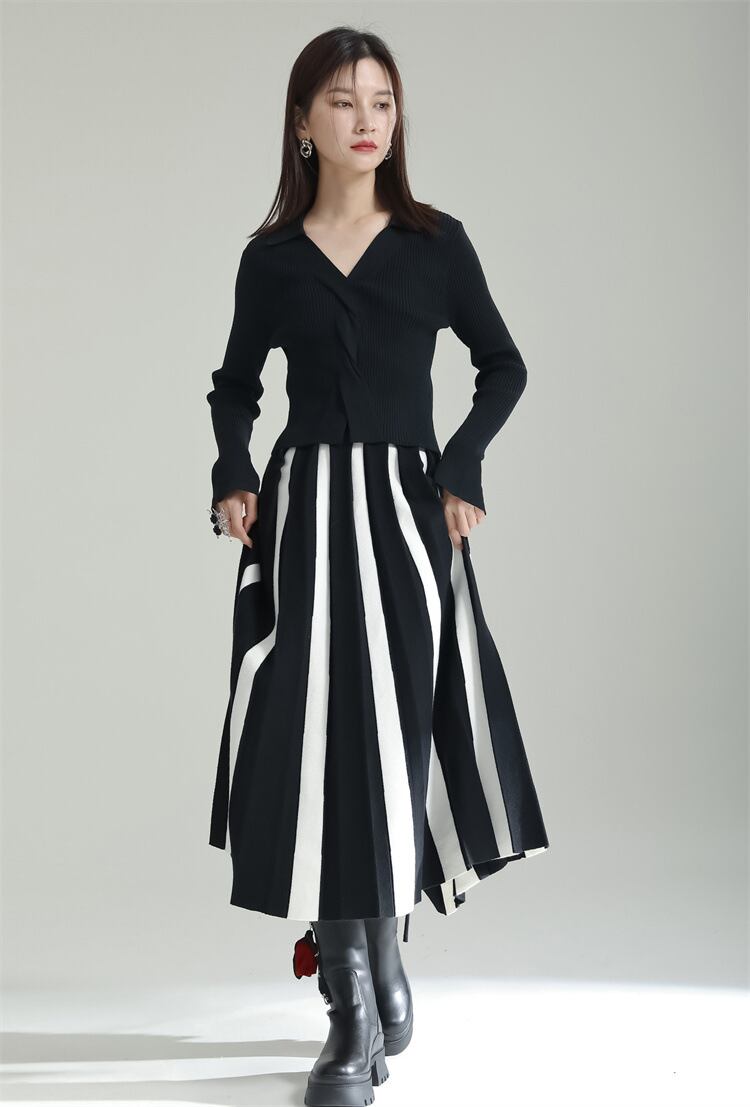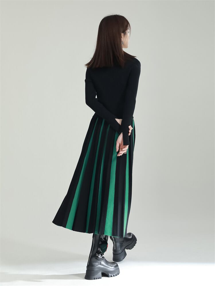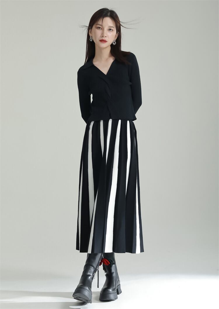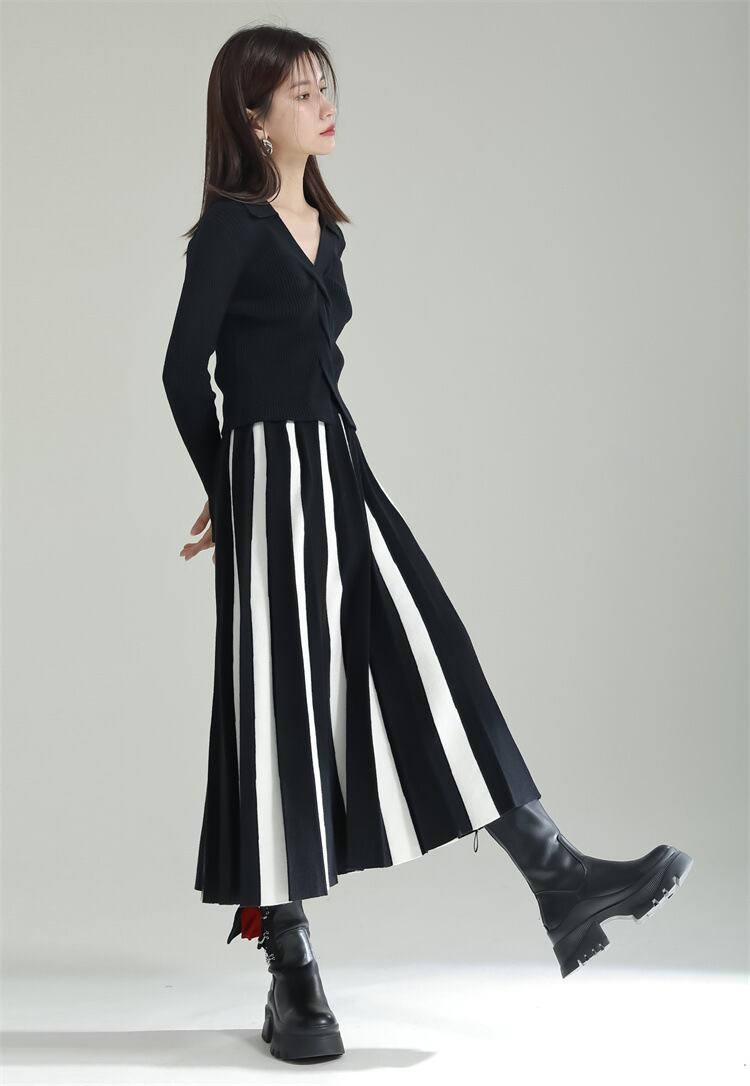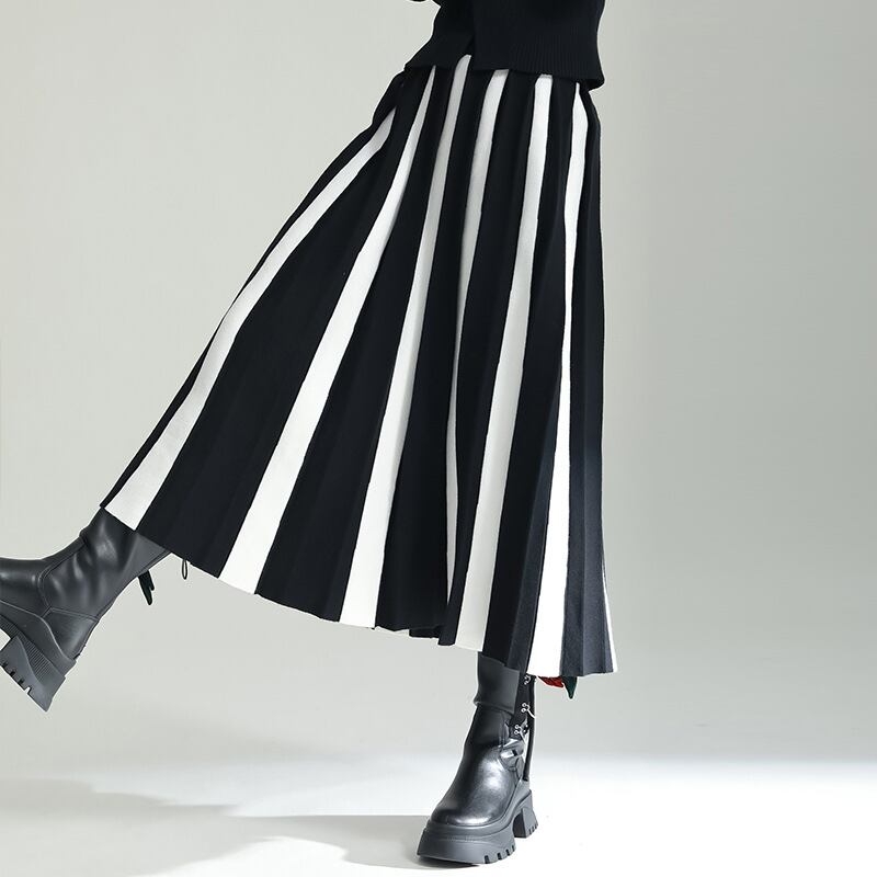u20546 2色 レディース スカート ボーダーロングスカート ストリート エレガンス