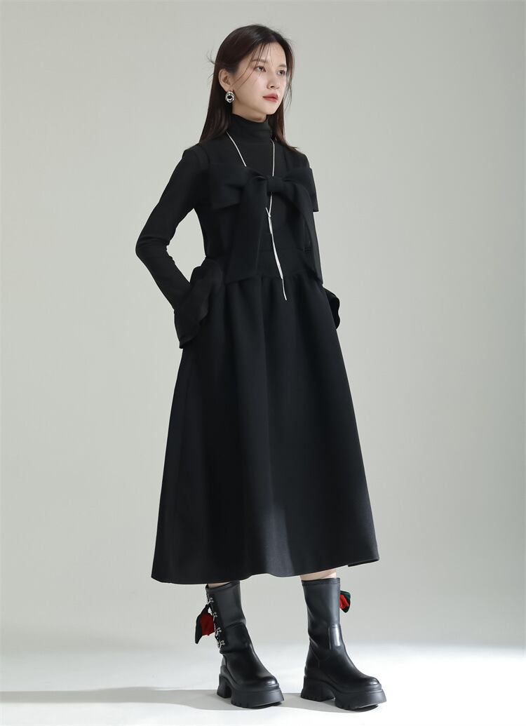 u20548 2色 レディース ワンピース ロング 上品 可愛い  無地 エレガンス 保温