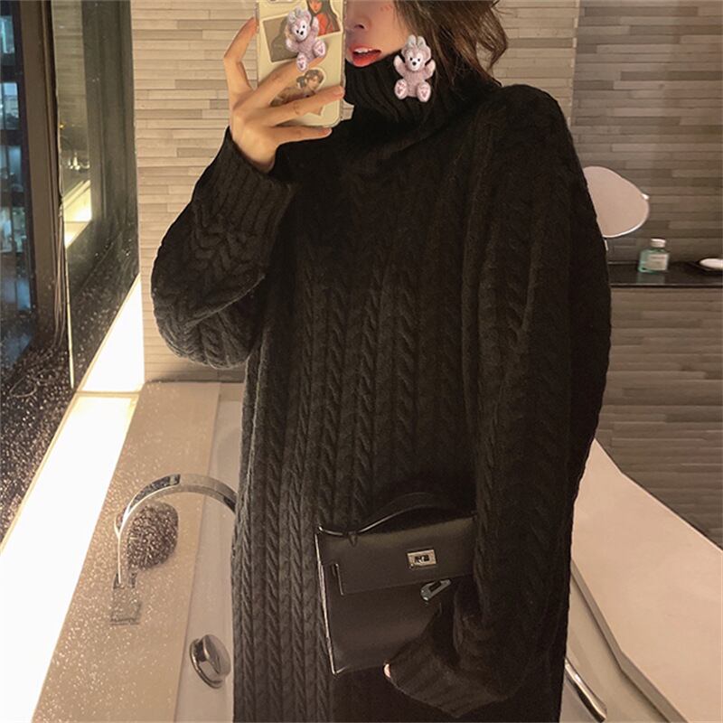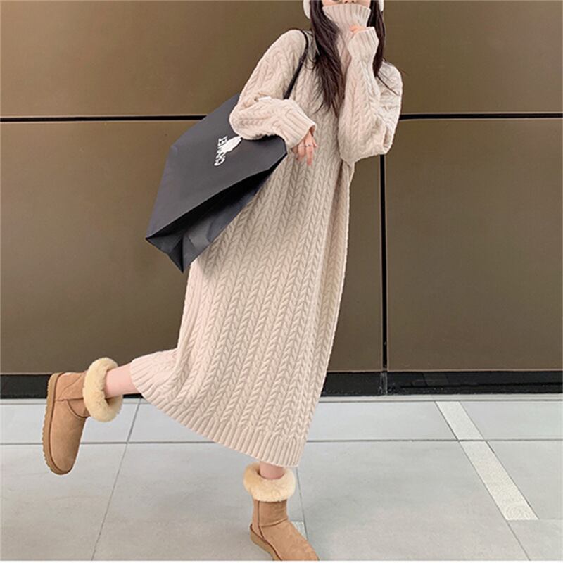 u20692 ワンピース 着痩せ 秋冬新作 レディース 無地 OL エレガンス ハイネック