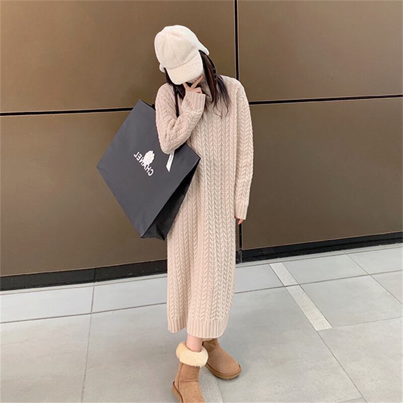 u20692 ワンピース 着痩せ   秋冬新作 レディース  無地 OL エレガンス ハイネック