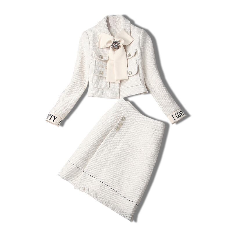 u20715 レディース ハイウエスト 保温 二点セット スカート エレガンス 長袖アウター 秋冬新作 蝶結び