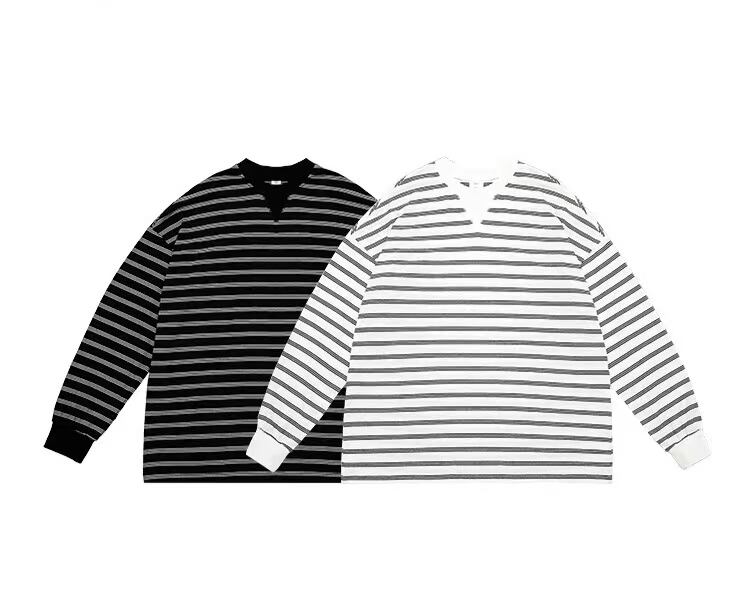 P13469メンズ Tシャツ春新作 トッブス  カジュアル ファッション ラウンドネック ボーダー 長袖